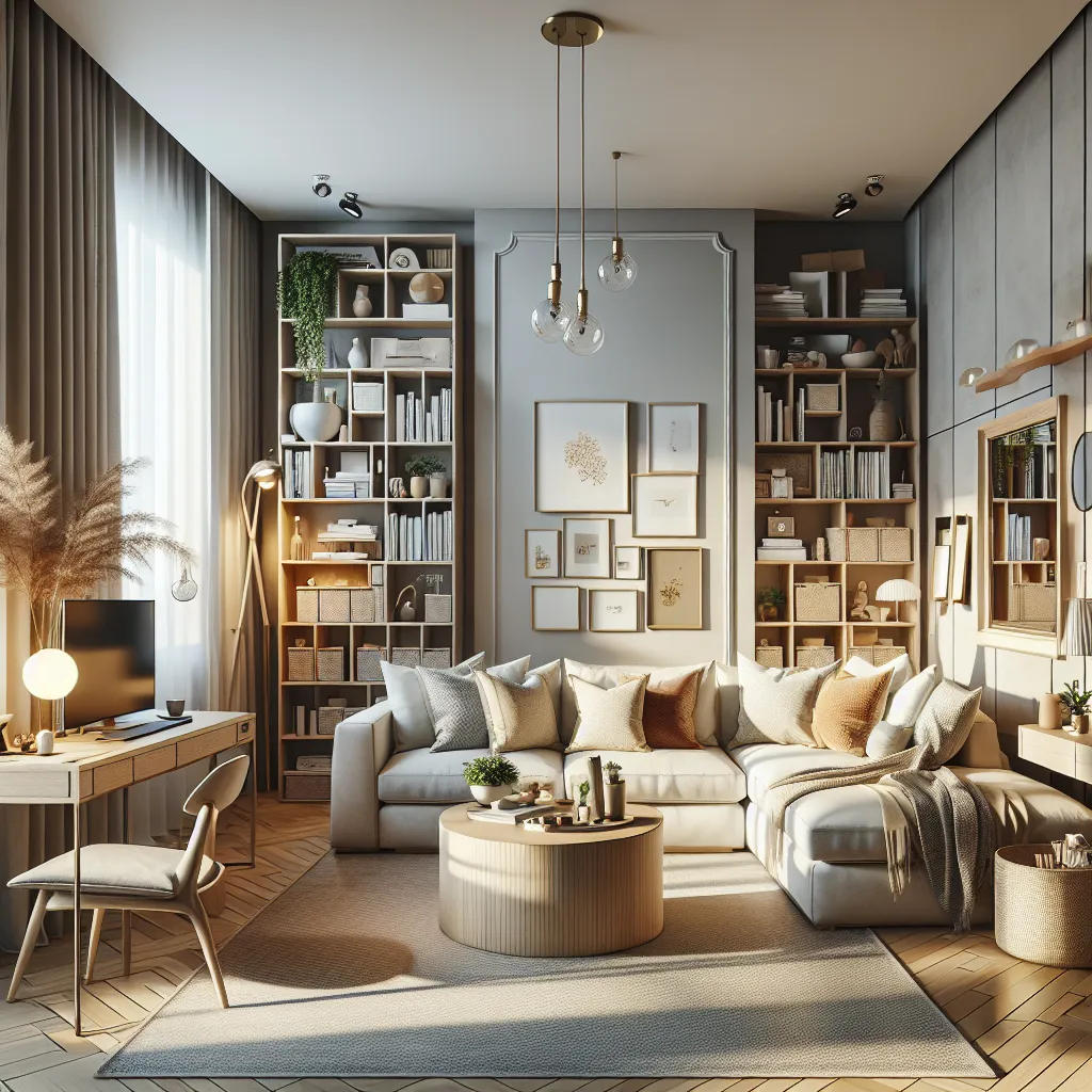 Dicas práticas para otimizar sua sala pequena, tornando-a aconchegante e funcional com móveis multifuncionais, cores claras e boa iluminação.